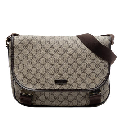 The Gucci GG Supreme Crossbody is a timeless designer handbag that blends iconic appeal with everyday versatility. Crafted with a durable coated canvas body and refined leather trim, this elegant crossbody bag features an adjustable flat canvas strap, a flap with dual buckle closures, and an interior slip pocket for convenient organization. Its classic silhouette and signature Gucci styling make it an excellent choice for anyone seeking luxury and contemporary style.<br /><br /> Designed for both fashion and functionality, this pre-owned Gucci crossbody offers a practical yet sophisticated option for carrying your daily essentials. Measuring approximately 10.24 inches long, 12.20 inches high, and 3.94 inches deep, it provides ample space while maintaining a sleek profile. Whether paired with casual daytime looks or elevated ensembles, this authentic Gucci bag is perfect for everyday use.<br /><br /> This pre-owned Gucci GG Supreme Crossbody is identified by model GG Supreme Crossbody and Item# FE608PI4GYT6FFOK. Condition Rating: B+. Comments: Exterior Back Worn, Stained With Others. Exterior Bottom Worn. Exterior Corners Worn. Exterior Front Worn. Exterior Handle/Strap Stained With Others. Exterior Side Worn. Exterior Top Worn. Hardware Practical Attachment Scratched. Interior Lining Stained With Others. Interior Pocket Stained With Others. Inclusions: None. A well-known luxury piece at a more approachable value, this is a great opportunity to own an authentic handbag at a more accessible price.