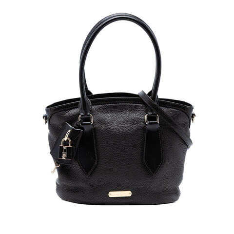 The pre-owned Burberry Grainy Calfskin Satchel is a refined designer handbag that blends timeless elegance with practical appeal. Crafted from grainy calfskin leather, this stylish satchel features rolled leather handles, an adjustable and detachable flat leather strap, an open top with magnetic snap closure, an interior zip compartment, and interior zip and slip pockets for easy organization. With dimensions of 9.84 x 10.43 x 4.72 inches, this Burberry satchel offers a versatile silhouette that is ideal for day-to-night wear, combining luxury and contemporary style.<br /><br /> Designed for both fashion and functionality, this authentic Burberry handbag offers the space and structure needed to carry your daily essentials with ease. The included padlock, key, shoulder strap, and charm add signature detail and versatility, making it easy to style as a handheld bag or shoulder bag. Whether paired with casual looks or polished outfits, this designer satchel is a smart addition to any wardrobe and perfect for everyday use.<br /><br /> Condition Rating: B+. Comments: Exterior Back Creased, Worn. Exterior Bottom Creased, Scratched. Exterior Corners Worn. Exterior Front Creased. Exterior Handle/Strap Cracked, Scratched, Creased, Stained With Others, Worn. Exterior Side Worn, Creased. Exterior Top Stained With Others. Hardware Closure Scratched. Hardware Embellishment Scratched. Hardware Practical Attachment Scratched. Zipper Scratched. Interior Lining Worn, Loose Stiching. Interior Pocket Stained With Others. This pre-owned Burberry Grainy Calfskin Satchel remains a desirable choice for buyers seeking authentic designer fashion with distinctive character and value. This is a great opportunity to own an authentic handbag at a more accessible price.