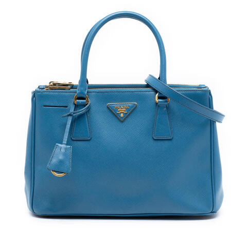 Pre-owned Prada Small Saffiano Lux Galleria Double Zip Satchel crafted from iconic saffiano leather, featuring rolled leather top handles, a detachable and adjustable flat leather shoulder strap, dual zip compartments, and interior zip and slip pockets. Its structured silhouette and timeless Prada appeal make it an elegant choice for day-to-night wear, offering luxury and contemporary style.<br /><br /> Designed for both fashion and functionality, this Prada satchel offers organized storage and versatile carrying options to suit your daily routine. The compact yet practical design makes it easy to carry essentials while maintaining a polished, sophisticated look, making it perfect for everyday use.<br /><br /> This authentic pre-owned Prada handbag is a smart choice for shoppers seeking designer style at a better value. The exterior corners were repainted. Rating: B. Condition for pre-owned item: Exterior Back Stained With Others, Creased. Exterior Bottom Stained With Others, Out of Shape. Exterior Corners Stained With Others, Worn, Repainted. Exterior Front Stained With Others, Creased. Exterior Handle/Strap Out of Shape, Creased, Worn, Stained With Others. Exterior Side Creased, Worn. Exterior Top Cracked, Worn, Stained With Others. Hardware Closure Scratched, Rusty/Tarnished. Hardware Embellishment Rusty/Tarnished, Scratched. Hardware Practical Attachment Scratched, Rusty/Tarnished. Zipper Scratched, Rusty/Tarnished. Interior Lining Stained With Others. Interior Pocket Stained With Others. Dimensions (in): 7.87 x 12.01 x 5.51. This is a great opportunity to own an authentic handbag at a more accessible price.