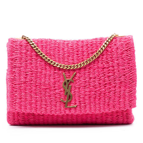 The Saint Laurent Medium Raffia Monogram Kate Crossbody is a chic designer handbag that blends timeless elegance with warm-weather appeal. Crafted with a textured raffia body, this stylish crossbody is accented by a curb chain link shoulder strap and a front flap featuring the iconic metal YSL logo with a magnetic snap closure. With dimensions of 8.27 x 10.63 x 2.56 inches, it offers a sleek yet practical silhouette that embodies luxury and contemporary style.<br /><br /> Designed for both fashion and functionality, this pre-owned Saint Laurent Kate crossbody is an excellent choice for elevating day-to-night looks. Its lightweight feel, signature monogram hardware, and versatile design make it easy to pair with both casual and dressy outfits, while the flap closure helps keep essentials secure. Whether you are adding to your designer handbag collection or searching for a standout accessory, this piece is perfect for everyday use.<br /><br /> This pre-owned Saint Laurent Medium Raffia Monogram Kate Crossbody includes a dust bag and is identified by Item# QPN1HNH7F4KJIG6O. Condition Rating: AB. Comments: Exterior Back Worn. Exterior Side Worn. Hardware Closure Scratched. Hardware Practical Attachment Scratched. A sophisticated option for luxury resale shoppers, this bag offers the charm of an authentic Saint Laurent piece with added value. This is a great opportunity to own an authentic handbag at a more accessible price.