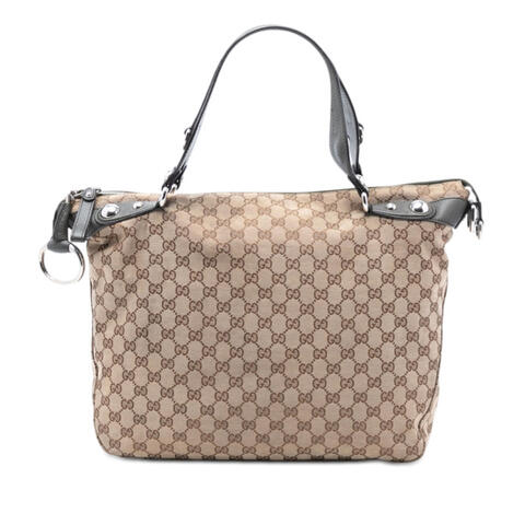 Pre-owned Gucci Large GG Canvas Icon Bit Satchel in iconic GG canvas with refined leather trim, offering a timeless designer look with practical elegance. This spacious satchel features flat leather handles, a secure top zip closure, and a structured silhouette that makes it a versatile choice for day-to-day styling. With dimensions of 12.20 x 14.17 x 4.72 inches, it delivers ample room while maintaining luxury and contemporary style.<br /><br /> Designed for both fashion and functionality, this Gucci satchel includes interior zip and slip pockets to help keep essentials organized and easily accessible. The classic canvas and leather combination gives it enduring appeal, making it a smart choice for anyone seeking an authentic luxury handbag that blends signature design with everyday versatility, perfect for everyday use.<br /><br /> Condition Rating: B+ Comments: Exterior Back Stained With Others, Worn, Stained With Transfer of Color. Exterior Front Stained With Transfer of Color, Stained With Others. Exterior Handle/Strap Worn. Exterior Side Worn. Exterior Top Worn. Hardware Embellishment Scratched. Hardware Practical Attachment Scratched. Zipper Scratched. Interior Lining Stained With Others. Inclusions: None Model: Large GG Canvas Icon Bit Satchel Item# PP9U8O0CRAP4I64W. This pre-own Gucci handbag is a stylish option for buyers who appreciate authentic designer pieces with character and value. This is a great opportunity to own an authentic handbag at a more accessible price.