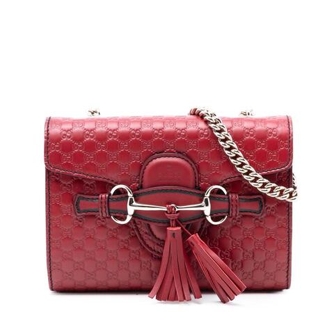The Gucci Mini Microguccissima Emily Crossbody is a chic and timeless handbag crafted from embossed leather, offering a refined designer look in a compact silhouette. Featuring elegant chain link shoulder straps, a front flap with a slip-through closure, and Guccis signature tassel detail, this stylish piece is ideal for adding luxury and contemporary style.<br /><br /> Designed for both fashion and functionality, this pre-owned Gucci crossbody includes an interior slip pocket to help keep your essentials organized while maintaining a sleek profile. With dimensions of 5.51 x 7.09 x 1.57 inches, it is perfectly sized for carrying daily necessities, making it a versatile designer accessory that is perfect for everyday use.<br /><br /> This authentic Gucci Mini Emily Crossbody, model Mini Microguccissima Emily Crossbody, comes with a dust bag and is a smart choice for anyone seeking a sophisticated luxury handbag. Condition Rating: AB. Comments: Hardware Practical Attachment Scratched. Interior Lining Creased. Item# 7AWMCPJIT2L9FDN0. Pre-owned condition with light signs of wear consistent with gentle use. This is a great opportunity to own an authentic handbag at a more accessible price.