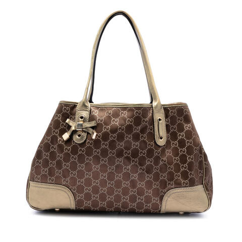 Pre-owned Gucci GG Nylon Princy Tote Ladies KIPP4179IB2J0YZ5 is a chic designer handbag that combines signature Gucci appeal with practical elegance. Crafted with a durable nylon body, refined leather trim, rolled leather handles, an open top, and interior zip and slip pockets, this tote offers a stylish balance of form and function. With dimensions of 9.06 x 14.57 x 3.94 inches, it is a versatile size for daily essentials while showcasing luxury and contemporary style.<br /><br /> Designed for both fashion and functionality, this Gucci GG Nylon Princy Tote is an excellent choice for anyone seeking a lightweight yet sophisticated handbag. The spacious interior and organized pocket design make it easy to carry your essentials throughout the day, while the classic Gucci look adds timeless designer appeal to any wardrobe. Whether paired with casual or polished outfits, this tote is perfect for everyday use.<br /><br /> This authentic pre-owned Gucci tote is a smart option for buyers looking for luxury at a more attainable value. Condition Rating: B+. Comments: Exterior Back Worn. Exterior Bottom Scratched, Worn. Exterior Corners Worn. Exterior Front Worn, Creased. Exterior Handle/Strap Worn. Exterior Side Worn. Exterior Top Worn. Hardware Closure Scratched. Hardware Practical Attachment Scratched. Zipper Scratched. Interior Lining Worn. Inclusions: None. Model: GG Nylon Princy Tote. Item# KIPP4179IB2J0YZ5. This is a great opportunity to own an authentic handbag at a more accessible price.