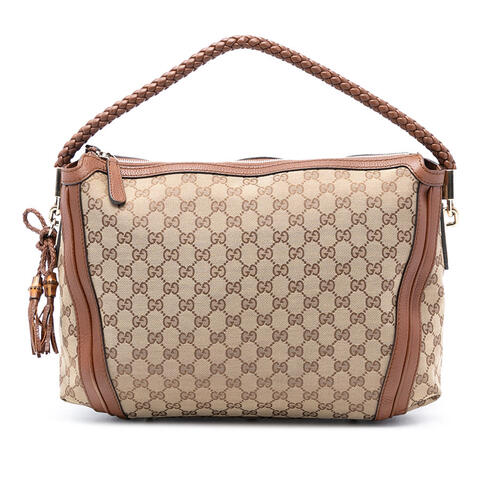 The Gucci Medium GG Canvas Bella Shoulder Bag showcases an elegant blend of signature design and everyday sophistication. Crafted with a durable GG canvas body and refined leather trim, this stylish handbag is complemented by a braided leather strap, a secure top zip closure, and thoughtfully organized interior zip and slip pockets. With dimensions of 11.42 x 11.81 x 3.54 inches, it offers a practical yet fashionable silhouette that reflects luxury and contemporary style.<br /><br /> Designed for both fashion and functionality, this pre-owned Gucci Bella Shoulder Bag is an excellent choice for women seeking a designer handbag that balances beauty and convenience. Its spacious interior and classic shoulder bag shape make it easy to carry daily essentials, while the iconic Gucci aesthetic adds timeless appeal to any wardrobe. Whether paired with casual daytime looks or elevated evening outfits, this bag is perfect for everyday use.<br /><br /> This authentic pre-owned Gucci Medium GG Canvas Bella Shoulder Bag, Model: Medium GG Canvas Bella Shoulder Bag, Item# 5JSBGTV8X6L93UE3, is a smart option for luxury lovers looking to invest in designer fashion for less. Condition Rating: B+. Comments: Exterior Back Worn. Exterior Bottom Worn. Exterior Corners Worn. Exterior Front Worn. Exterior Handle/Strap Worn. Exterior Side Worn. Exterior Top Worn. Hardware Practical Attachment Scratched. Zipper Scratched. Interior Lining Stained With Others. Inclusions: None. This is a great opportunity to own an authentic handbag at a more accessible price.