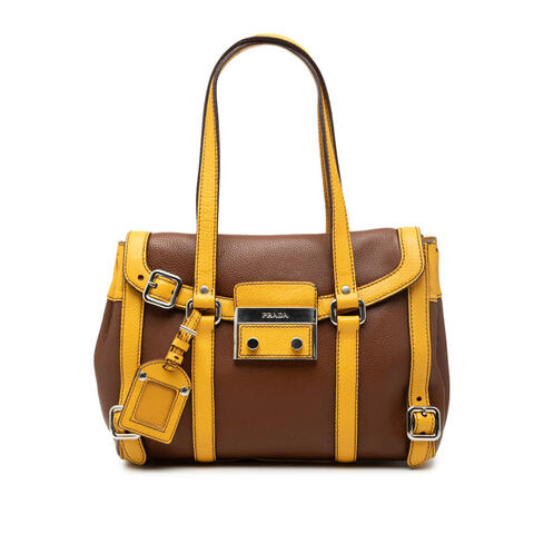 Pre-owned Prada Bicolor Vitello Daino Pushlock Flap Bag Ladies KFMEUYQ24B24E52A (LPN402257)