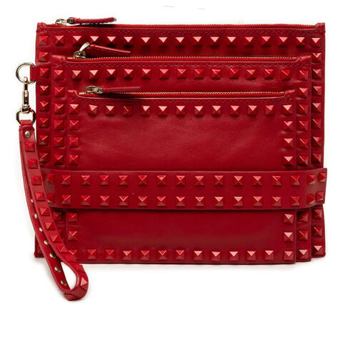 Pre-owned Valentino Leather Rockstud Rouge Triple Zip Clutch Ladies D9Q9N2K5J48OPX23 - BS-P564VB41 (LPN402268)
