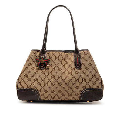 Pre-owned Gucci GG Canvas Princy Tote in iconic GG canvas with leather trim, rolled leather handles, and a timeless open-top silhouette. This elegant designer handbag offers a spacious interior with zip and slip pockets, making it a stylish and practical choice for daily wear. A refined Gucci tote like this brings together signature craftsmanship, luxury and contemporary style.<br /><br /> Designed for both fashion and functionality, this Gucci Princy tote is ideal for carrying your essentials while complementing both casual and polished looks. The classic canvas body, structured shape, and versatile interior storage make it a smart addition to any handbag collection, perfect for everyday use.<br /><br /> This pre-owned Gucci GG Canvas Princy Tote measures 9.06 x 14.57 x 3.94 inches and features repainted corners. Condition Rating: B. Comments: Exterior Back Stained With Others, Worn, Creased. Exterior Bottom Scratched. Exterior Corners Worn, Repainted. Exterior Front Stained With Others, Worn. Exterior Handle/Strap Loose Stiching, Cracked, Worn. Exterior Side Stained With Others. Exterior Top Worn. Hardware Closure Scratched. Hardware Practical Attachment Scratched, Rusty/Tarnished. Zipper Scratched. Interior Lining Stained With Others, Cracked, Worn. Interior Pocket Stained With Others. Inclusions: None. Model: GG Canvas Princy Tote. Item# MUDP56DHFRVFZ7RC. This is a great opportunity to own an authentic handbag at a more accessible price.