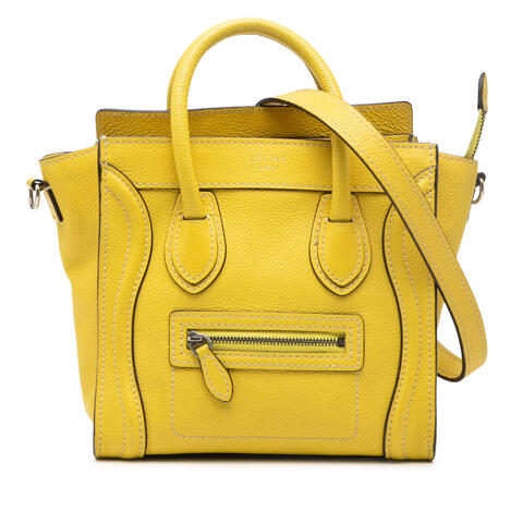 The Celine Nano Grained Calfskin Luggage Tote is a timeless designer handbag crafted from premium leather, featuring rolled leather handles, a detachable flat leather shoulder strap, a top zip closure, an exterior front zip pocket, and interior slip pockets. Compact yet statement-making, this elegant tote measures 7.87 x 7.68 x 3.74 inches, making it an ideal choice for carrying your daily essentials with ease while showcasing luxury and contemporary style.<br /><br /> Designed for both fashion and functionality, this pre-owned Celine Nano Luggage Tote offers a versatile silhouette that transitions effortlessly from day to evening. The refined grained calfskin leather, practical zip-top design, and convenient interior organization make it a stylish and smart investment for anyone seeking an authentic luxury handbag that is perfect for everyday use.<br /><br /> This authentic pre-owned Celine Nano Grained Calfskin Luggage Tote includes the shoulder strap and is identified by Model: Nano Grained Calfskin Luggage Tote, Item# S1B4FUW5FT1XJPKJ. Condition Rating: B+. Comments: Exterior Back Scratched. Exterior Bottom Stained With Others. Exterior Corners Worn. Exterior Front Scratched, Stained With Others. Exterior Handle/Strap Worn, Creased. Exterior Side Discolored. Exterior Top Worn. Hardware Practical Attachment Scratched. Zipper Scratched. Interior Lining Worn, Stained With Others. Interior Pocket Stained With Others. This is a great opportunity to own an authentic handbag at a more accessible price.