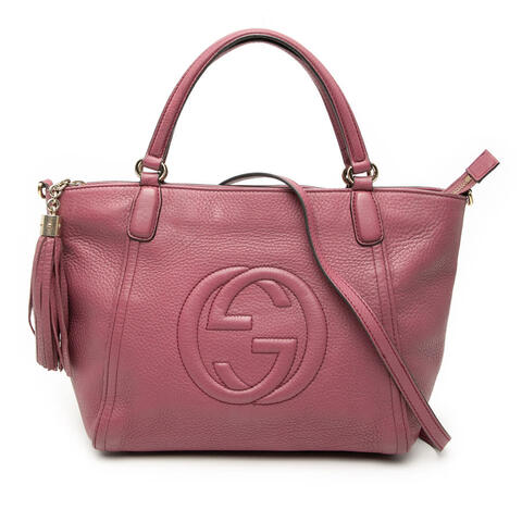 The pre-owned Gucci Small Calfskin Soho Cellarius Satchel is a timeless designer handbag that blends iconic craftsmanship with everyday elegance. Crafted from supple calfskin leather, this stylish Gucci satchel features flat leather handles, a detachable flat leather strap, and a secure top zip closure accented with tassel details. Inside, you will find convenient zip and slip pockets that help keep your essentials organized, while its compact yet practical size of 8.66 x 10.24 x 4.72 inches makes it an ideal choice for daily wear with luxury and contemporary style.<br /><br /> Designed for both fashion and functionality, this Gucci Soho satchel offers the versatility modern women love in a luxury handbag. The detachable shoulder strap allows for multiple carrying options, making it easy to wear as a handheld bag or over the shoulder depending on your day. With its refined silhouette, premium leather construction, and thoughtfully designed interior, this authentic Gucci bag is a sophisticated addition to any wardrobe and perfect for everyday use.<br /><br /> This authentic pre-owned Gucci handbag includes the shoulder strap and presents a wonderful chance to own a sought-after designer accessory at a more attainable value. Condition Rating: B+. Comments: Exterior Bottom Stained With Others. Exterior Corners Worn. Exterior Front Stained With Others. Exterior Handle/Strap Stained With Others, Cracked, Worn. Exterior Side Worn. Exterior Top Stained With Others. Hardware Practical Attachment Rusty/Tarnished, Scratched. Zipper Scratched, Rusty/Tarnished. Interior Lining Stained With Others. Interior Pocket Stained With Others. This is a great opportunity to own an authentic handbag at a more accessible price.