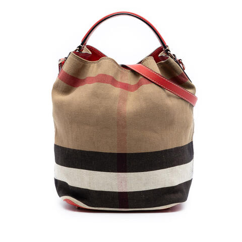 Pre-owned Burberry Medium Mega Check Canvas Ashby Bucket Bag Ladies SQ4ICZG8HGC7U59F - CNQINOH0QIN (LPN402316)