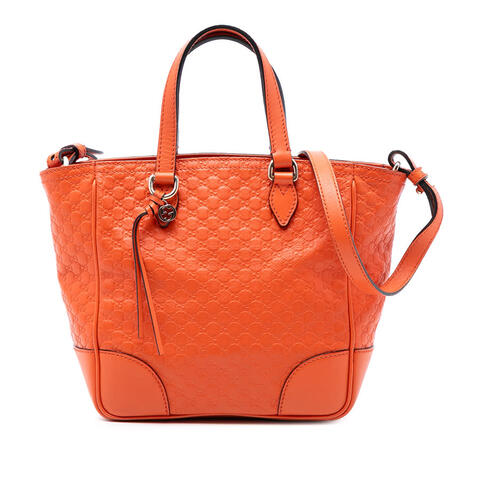 The Gucci Small Microguccissima Bree Satchel is a refined designer handbag crafted from embossed leather, offering a timeless look with a modern edge. This elegant satchel features flat leather handles, a detachable flat leather strap, a secure top zip closure, and interior zip and slip pockets for stylish organization. Compact yet sophisticated, it is an ideal choice for anyone seeking luxury and contemporary style.<br /><br /> Designed for both fashion and functionality, this pre-owned Gucci satchel delivers versatility for day-to-night wear. Its structured silhouette and thoughtfully designed interior make it easy to carry your essentials while maintaining a polished appearance. Whether worn by the handles or with the included shoulder strap, this designer bag is perfect for everyday use.<br /><br /> This pre-owned Gucci Small Microguccissima Bree Satchel measures approximately 7.87 x 7.48 x 4.13 inches and includes the shoulder strap. Condition Rating: B+. Pre-owned condition details include: Exterior Front Worn. Exterior Handle/Strap Worn. Exterior Side Scratched. Exterior Top Worn, Cut Stitching. Hardware Practical Attachment Scratched. Zipper Scratched. Model: Small Microguccissima Bree Satchel. Item# 7AX7ZXOOOVT6I9DR. This is a great opportunity to own an authentic handbag at a more accessible price.