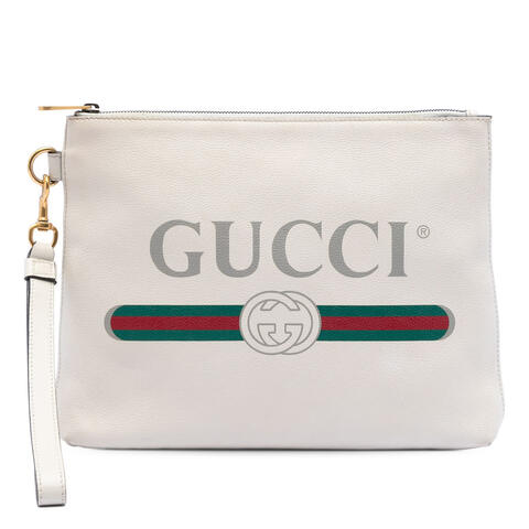 The Gucci Leather Logo Clutch is a chic and versatile designer accessory crafted from printed leather, featuring a sleek silhouette that easily complements both casual and elevated looks. Designed with a detachable flat wrist strap and secure top zip closure, this pre-owned Gucci clutch offers effortless style and practicality in one sophisticated piece. Its compact yet functional design makes it ideal for carrying your daily essentials with luxury and contemporary style.<br /><br /> Designed for both fashion and functionality, this authentic Gucci clutch measures approximately 9.45 inches long, 12.20 inches wide, and 1.57 inches deep, offering ample space for essentials such as your phone, cards, keys, and cosmetics. The refined leather finish and iconic Gucci aesthetic make it a timeless addition to any handbag collection, while the wrist strap allows for comfortable carrying on the go, making it perfect for everyday use.<br /><br /> This pre-owned Gucci Leather Logo Clutch, model Leather Logo Clutch, Item# 2Y8PGS0FULNY9KWN, is rated AB and remains a stylish option for luxury lovers seeking designer value. Condition Rating: AB. Comments: Exterior Back Stained With Others. Exterior Bottom Stained With Others. Exterior Corners Worn. Exterior Front Stained With Others. Exterior Handle/Strap Stained With Others. Exterior Side Stained With Others. Exterior Top Worn. Hardware Practical Attachment Scratched. Zipper Scratched. Interior Lining Stained With Others. Inclusions: None. Pre-owned Gucci Leather Logo Clutch Ladies 2Y8PGS0FULNY9KWN. This is a great opportunity to own an authentic handbag at a more accessible price.