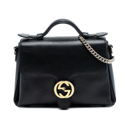 The pre-owned Gucci Small Dollar Calf Interlocking G Satchel is a refined designer handbag that blends timeless elegance with iconic appeal. Crafted from supple dollar calf leather, this satchel showcases a structured silhouette, a flat leather top handle, a detachable chain-link shoulder strap with a leather guard, and a front flap with the signature interlocking GG flip-lock closure. Inside, the bag offers convenient zip and slip pockets to help keep essentials organized, making it a sophisticated choice for day-to-night wear with luxury and contemporary style.<br /><br /> Designed for both fashion and functionality, this Gucci satchel offers the versatility modern buyers look for in a luxury handbag. Its compact yet practical dimensions of 6.89 x 10.24 x 2.76 inches make it ideal for carrying daily essentials without feeling bulky, while the detachable shoulder strap allows for multiple styling options. Whether paired with casual outfits or polished evening looks, this authentic Gucci bag is a smart addition to any designer collection and perfect for everyday use.<br /><br /> This authentic pre-owned Gucci Small Dollar Calf Interlocking G Satchel includes the shoulder strap and remains a stylish investment for luxury lovers seeking designer fashion at a better value. Condition Rating: B+. Comments: Exterior Back Creased, Worn. Exterior Corners Worn. Exterior Front Stained With Others, Worn, Creased. Exterior Handle/Strap Worn, Creased. Exterior Side Cracked. Hardware Closure Rusty/Tarnished, Scratched. Hardware Practical Attachment Rusty/Tarnished, Scratched. Zipper Scratched, Rusty/Tarnished. Interior Lining Cracked, Worn, Creased, Stained With Others. This is a great opportunity to own an authentic handbag at a more accessible price.