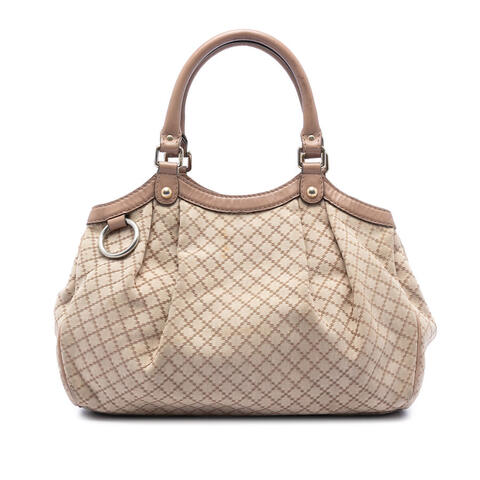 The pre-owned Gucci Medium Diamante Canvas Sukey Tote is a timeless designer handbag that blends signature elegance with practical appeal. Crafted with Guccis iconic Diamante canvas and refined leather trim, this stylish tote features rolled leather handles, an open top with a magnetic snap closure, and an interior zip pocket for added organization. Its versatile silhouette and classic design make it a standout accessory for any wardrobe, offering luxury and contemporary style.<br /><br /> Designed for both fashion and functionality, this Gucci Sukey Tote offers ample space for your daily essentials while maintaining a polished and sophisticated look. Measuring approximately 11.02 x 13.39 x 4.33 inches, it is well-sized for work, shopping, or casual outings, and the interior zip pocket helps keep smaller items secure and easy to access. With its combination of designer craftsmanship and everyday versatility, this tote is perfect for everyday use.<br /><br /> This authentic pre-owned Gucci handbag is a desirable choice for anyone seeking a stylish luxury accessory at a better value. Condition Rating: B+. Pre-owned condition details include wear and staining throughout, with comments as follows: Exterior Back Worn, Stained With Others. Exterior Bottom Worn. Exterior Corners Worn. Exterior Front Stained With Transfer of Color, Worn, Stained With Others, Scratched. Exterior Handle/Strap Worn, Split. Exterior Side Stained With Others. Exterior Top Cracked, Worn. Hardware Closure Scratched. Hardware Practical Attachment Scratched. Zipper Scratched. Interior Lining Worn, Stained With Others. Inclusions: None. Model: Medium Diamante Canvas Sukey Tote. Item# YE8YCFX34T07H71B. This is a great opportunity to own an authentic handbag at a more accessible price.
