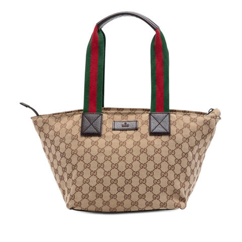 The pre-owned Gucci GG Canvas Web Tote is a timeless designer handbag that blends iconic appeal with practical elegance. Crafted with a durable canvas body, leather trim, and flat nylon and leather handles, this stylish tote offers a refined look that easily complements a wide range of outfits. The top zip closure helps keep your essentials secure, while the classic Gucci design delivers luxury and contemporary style.<br /><br /> Designed for both fashion and functionality, this Gucci tote features a thoughtfully sized interior with zip and slip pockets to help organize your daily essentials. Measuring approximately 9.06 x 9.45 x 7.09 inches, it is compact yet versatile enough for daily errands, casual outings, or on-the-go sophistication. Its combination of signature materials and practical storage makes it a smart designer choice, perfect for everyday use.<br /><br /> This authentic pre-owned Gucci GG Canvas Web Tote is a stylish way to enjoy luxury fashion at a better value. Condition Rating: B. Comments: Exterior Back Worn. Exterior Bottom Worn. Exterior Corners Worn, Scratched. Exterior Front Worn. Exterior Handle/Strap Worn. Exterior Top Worn, Ripped. Zipper Scratched. Inclusions: None. Model: GG Canvas Web Tote. Item# ZO0XQ9SBPW7MEOPP. This is a great opportunity to own an authentic handbag at a more accessible price.