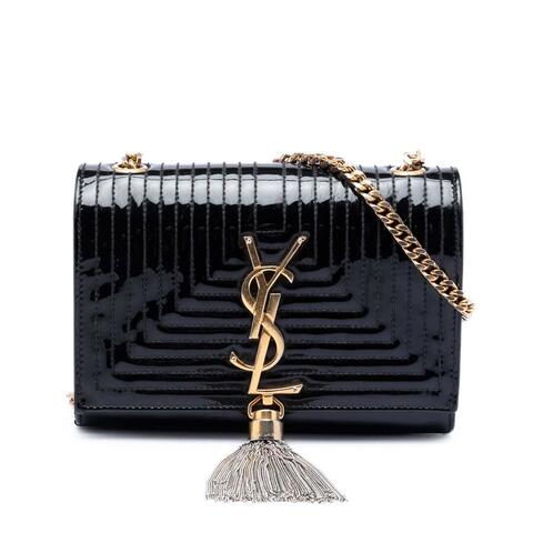 Pre-owned Saint Laurent Small Quilted Patent Monogram Kate Tassel Crossbody is a chic designer handbag that blends timeless appeal with modern sophistication. Crafted with a quilted patent leather body, this elegant Kate bag is accented by the signature tassel detail, a chain link shoulder strap, and a front flap with magnetic snap closure for a polished finish. Its compact silhouette and iconic Monogram styling make it a standout accessory for day or evening wear, offering luxury and contemporary style.<br /><br /> Designed for both fashion and functionality, this Saint Laurent crossbody features an interior slip pocket to help keep small essentials organized while maintaining a sleek, lightweight profile. Measuring approximately 4.72 inches high, 6.50 inches wide, and 1.77 inches deep, it is an ideal size for carrying your must-have items without feeling bulky. With its versatile design and elevated look, this designer handbag is perfect for everyday use.<br /><br /> Condition Rating: B+. Comments: Exterior Back Scratched, Stained With Others, Creased. Exterior Bottom Stained With Others, Scratched. Exterior Corners Worn. Exterior Front Stained With Others, Stained With Transfer of Color, Scratched. Exterior Side Worn, Stained With Others. Exterior Top Stained With Others, Scratched. Hardware Closure Scratched. Hardware Practical Attachment Scratched. Interior Lining Worn, Scratched, Stained With Others. Inclusions: None. Model: Small Quilted Patent Monogram Kate Tassel Crossbody. Item# DEKDBF9CXXDZ8ZUK. This authentic pre-owned Saint Laurent handbag offers an excellent way to enjoy a coveted luxury piece while shopping more thoughtfully. This is a great opportunity to own an authentic handbag at a more accessible price.