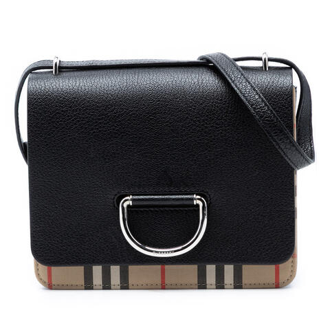 Pre-owned Burberry Small House Check Trimmed Goatskin D Ring Crossbody Ladies B7T3DDF1OB9BGMCF (LPN402506)