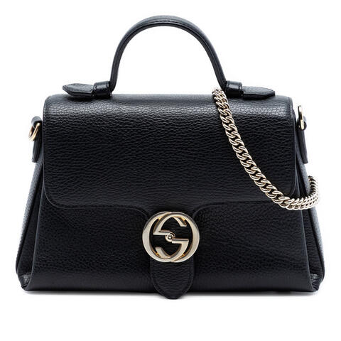 The pre-owned Gucci Small Dollar Calf Interlocking G Satchel is a timeless designer handbag that blends elegance with everyday versatility. Crafted from supple leather, this satchel features a structured silhouette, a flat leather top handle, a detachable chain-link shoulder strap, and Guccis signature front flap with an interlocking GG flip-lock closure. Its compact yet refined design makes it an ideal choice for anyone seeking luxury and contemporary style.<br /><br /> Designed for both fashion and functionality, this Gucci satchel offers a thoughtfully organized interior with both zip and slip pockets to help keep your essentials secure and within easy reach. Measuring approximately 7.09 inches high, 10.24 inches wide, and 3.54 inches deep, it is perfectly sized for daily wear while maintaining a polished, sophisticated look that is perfect for everyday use.<br /><br /> This authentic Gucci handbag includes the shoulder strap and is identified as Model: Small Dollar Calf Interlocking G Satchel, Item# I5DVJJC60Q2LOQDM. Condition Rating: AB. Comments: Exterior Corners Creased. Exterior Handle/Strap Creased, Worn. Hardware Closure Scratched. Hardware Practical Attachment Scratched. Interior Lining Worn. As a pre-owned designer piece, it offers exceptional value for shoppers looking to invest in iconic style. This is a great opportunity to own an authentic handbag at a more accessible price.