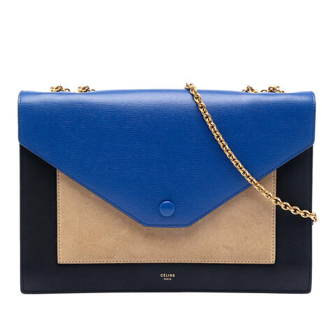 Pre-owned Celine Large Tricolor Calfskin and Suede Pocket Envelope Flap on Chain Ladies UX4RLMNPU0BNAMJS (LPN402535)