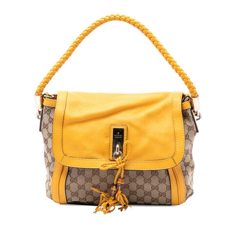The Gucci GG Canvas Bella Flap Satchel is a timeless designer handbag that blends iconic elegance with practical appeal. Crafted with a durable GG canvas body, refined leather trim, tassel detailing, and a braided leather handle, this satchel offers a sophisticated look that elevates any wardrobe. Its structured silhouette and signature Gucci styling make it an excellent choice for anyone seeking luxury and contemporary style.<br /><br /> Designed for both fashion and functionality, this Gucci Bella satchel features a top flap with a magnetic snap button closure, along with convenient interior zip and slip pockets to help keep your essentials organized. Measuring approximately 9.84 inches high, 12.20 inches wide, and 4.72 inches deep, it offers a versatile size for daily errands, work, or casual outings. With its stylish design and useful storage, this handbag is perfect for everyday use.<br /><br /> This pre-owned Gucci GG Canvas Bella Flap Satchel for ladies is a smart option for shoppers who want authentic designer fashion at a better value. Condition Rating: B+. Comments: Exterior Back Worn. Exterior Corners Loose Stiching, Worn. Exterior Front Creased. Exterior Top Creased. Hardware Closure Scratched. Hardware Practical Attachment Scratched. Zipper Scratched. Interior Lining Creased, Worn. Inclusions: None. Model: GG Canvas Bella Flap Satchel. Item# J05LEOPD0KL0YBTE. This is a great opportunity to own an authentic handbag at a more accessible price.