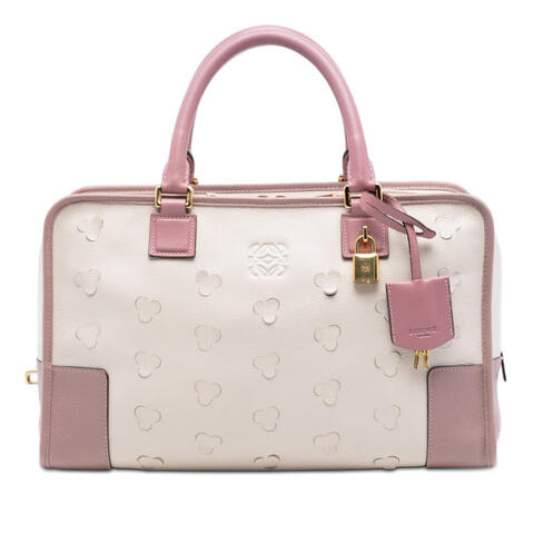 The Loewe Limited Edition Cherry Blossom Leather Amazona 36 is a sophisticated designer handbag that blends timeless craftsmanship with standout appeal. Crafted from premium leather, this elegant piece features rolled leather handles, a signature clochette, and a secure top zip closure, making it a refined choice for any luxury handbag collection. Its structured silhouette and distinctive cherry blossom design capture both luxury and contemporary style.<br /><br /> Designed for both fashion and functionality, the Amazona 36 offers a spacious interior with zip and flap pockets to help keep your essentials organized throughout the day. With dimensions of 9.06 x 14.17 x 5.91 inches, this Loewe handbag is ideally sized for carrying daily necessities while maintaining a polished, designer look that is perfect for everyday use.<br /><br /> This pre-owned Loewe Limited Edition Cherry Blossom Leather Amazona 36 includes a charm, padlock, and key. Condition Rating: B+. Comments: Exterior corners worn. Exterior front worn. Exterior handle/strap cracked. Exterior pocket cracked. Exterior side scratched. Exterior top stained with others. Hardware closure scratched. Hardware key scratched. Hardware practical attachment scratched. Zipper scratched. Model: Limited Edition Cherry Blossom Leather Amazona 36. Item# MFJBKSMAKVXFM7GD. This is a great opportunity to own an authentic handbag at a more accessible price.