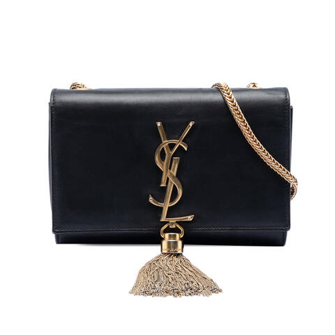The Saint Laurent Small Smooth Calfskin Monogram Kate Tassel Crossbody is a timeless designer handbag that blends iconic elegance with modern appeal. Crafted from smooth calfskin leather, this chic crossbody features the signature YSL monogram, a stylish tassel detail, and a sleek chain-link shoulder strap for a polished finish. Its compact silhouette and refined design make it a standout accessory for both day and evening wear, offering luxury and contemporary style.<br /><br /> Designed for both fashion and functionality, this Saint Laurent Kate crossbody includes a front flap with magnetic snap closure and an interior slip pocket to help keep your essentials organized. Measuring approximately 4.92 inches high, 6.69 inches wide, and 1.57 inches deep, it is an ideal size for carrying your small daily necessities while maintaining a lightweight and sophisticated profile. This elegant pre-owned handbag is perfect for adding designer charm to any outfit and is perfect for everyday use.<br /><br /> This pre-owned Saint Laurent Small Smooth Calfskin Monogram Kate Tassel Crossbody, model Small Smooth Calfskin Monogram Kate Tassel Crossbody, Item# 3G3KE3RGYL4KTK3A, is a desirable choice for luxury lovers seeking authentic designer style. Condition Rating: B+. Comments: Exterior Back Creased, Scratched. Exterior Corners Worn. Exterior Front Creased, Scratched. Exterior Side Cracked. Exterior Top Stained With Others. Hardware Closure Scratched. Hardware Practical Attachment Scratched. Interior Lining Worn, Creased. Inclusions: None. This is a great opportunity to own an authentic handbag at a more accessible price.