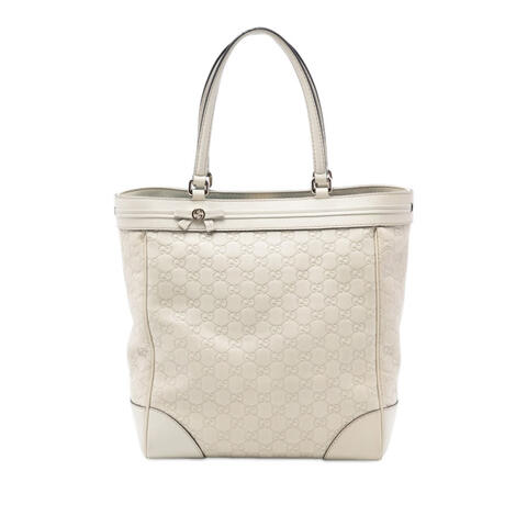 The Gucci Guccissima Mayfair Tote is a sophisticated pre-owned handbag that blends timeless elegance with practical design. Crafted from embossed leather, this tote features flat leather straps, a signature ribbon detail at the top panel, and a secure top magnetic closure for effortless everyday wear. Its refined silhouette and iconic Gucci appeal make it an exceptional choice for anyone seeking luxury and contemporary style.<br /><br /> Designed for both fashion and functionality, the interior offers convenient zip and slip pockets to help keep your essentials organized throughout the day. With dimensions of 12.80 x 11.02 x 4.92 inches, this Gucci Mayfair Tote provides ample space while maintaining a polished, versatile look that complements a wide range of outfits. Whether for work, shopping, or daily errands, this designer tote is perfect for everyday use.<br /><br /> This pre-owned Gucci Guccissima Mayfair Tote, model KWO1I9SRL0KEWZDT, is a stylish and value-conscious way to add a coveted designer handbag to your collection. Condition Rating: AB. Comments: Exterior Corners Worn. Exterior Handle/Strap Stained With Others. Exterior Side Creased. Hardware Closure Scratched. Hardware Practical Attachment Scratched. Zipper Scratched. Inclusions: None. This is a great opportunity to own an authentic handbag at a more accessible price.