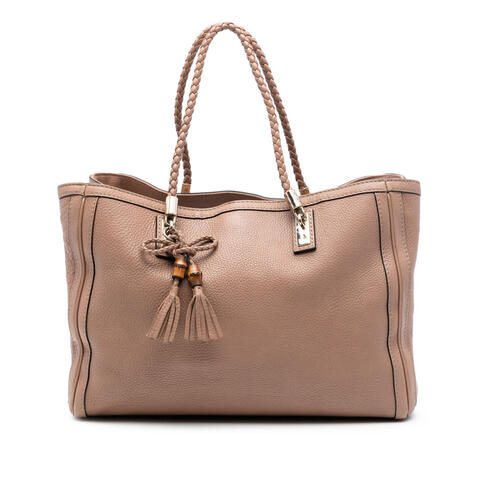 The pre-owned Gucci Medium Leather Bella Tote is a sophisticated designer handbag that combines timeless elegance with practical appeal. Crafted with a luxurious leather body, this Bella tote bag features distinctive braided straps, an open top with a secure lobster clasp closure, an interior zip compartment, and convenient interior zip and slip pockets. With dimensions of 10.63 x 14.76 x 6.30 inches, it offers a spacious silhouette ideal for carrying daily essentials while showcasing luxury and contemporary style.<br /><br /> Designed for both fashion and functionality, this Gucci tote delivers the versatility modern women need in a premium everyday handbag. Its roomy interior and thoughtfully organized compartments make it easy to store your essentials, while the classic Gucci design adds refined charm to any wardrobe. Whether paired with casual daytime looks or elevated ensembles, this authentic Gucci Bella Tote is a stylish investment piece that is perfect for everyday use.<br /><br /> This pre-owned Gucci Medium Leather Bella Tote includes a dust bag and remains a desirable choice for anyone seeking authentic luxury at a better value. Condition Rating: B+. Comments: Hardware Practical Attachment Scratched. Interior Pocket Stained With Others. Exterior Side Creased. Exterior Back Scratched, Creased. Exterior Bottom Stained With Others. Exterior Front Creased. Exterior Corners Worn. Exterior Top Worn. Interior Lining Stained With Others. Exterior Handle/Strap Stained With Others, Worn. Zipper Scratched. Model: Medium Leather Bella Tote. Item# GVXVH0T73YSYK0YK. This is a great opportunity to own an authentic handbag at a more accessible price.