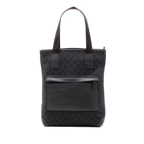 The Gucci GG Denim Tote is a chic and versatile handbag that combines iconic design with everyday practicality. Crafted with a durable denim body and refined leather trim, this stylish tote features flat leather straps, a secure top zip closure, an exterior front zip pocket, and an interior zip pocket for added organization. With dimensions of 13.78 x 10.63 x 5.12 inches, it offers ample space for your daily essentials while showcasing luxury and contemporary style.<br /><br /> Designed for both fashion and functionality, this pre-owned Gucci tote is an excellent choice for anyone seeking a designer handbag that blends elegance with convenience. The classic GG denim pattern gives it a timeless appeal, while the thoughtful pocket layout helps keep your belongings neatly stored and easy to access. Whether you're heading to work, shopping, or meeting friends, this bag is perfect for everyday use.<br /><br /> This authentic pre-owned Gucci GG Denim Tote is a smart option for buyers looking to enjoy designer fashion at a more affordable value. Condition Rating: B+. Pre-owned condition details include worn exterior corners, scratched zipper, worn exterior top, scratched exterior front, and staining on the exterior back with others. Inclusions: None. Model: GG Denim Tote. Item# RW5SBE0K2LBYT0S3. This is a great opportunity to own an authentic handbag at a more accessible price.