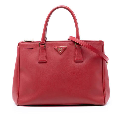 The Prada Large Saffiano Lux Galleria Double Zip Satchel is a timeless designer handbag crafted from durable saffiano leather, offering a refined silhouette with rolled leather handles, a detachable flat strap, and a spacious open top for effortless elegance. Its dual zip compartments and thoughtfully organized interior zip and slip pockets make it an ideal choice for carrying daily essentials while maintaining a polished look, blending luxury and contemporary style.<br /><br /> Designed for both fashion and functionality, this pre-owned Prada satchel delivers versatile wear with structured storage, elegant detailing, and the convenience of both hand-held and shoulder carry options thanks to the included shoulder strap. The sophisticated design, premium craftsmanship, and practical compartment layout make it a stylish investment for work, shopping, or travel, perfect for everyday use.<br /><br /> This authentic pre-owned Prada Large Saffiano Lux Galleria Double Zip Satchel measures 9.84 x 13.19 x 5.91 inches and is identified by Model: Large Saffiano Lux Galleria Double Zip Satchel, Item# EG2WRJO45AQ42GKN. Condition Rating: B+. Comments: Zipper Scratched. Exterior Corners Worn, Stained With Others. Exterior Top Worn, Stained With Others. Exterior Side Stained With Others. Hardware Closure Scratched. Exterior Handle/Strap Stained With Others. Exterior Front Stained With Others. Hardware Practical Attachment Scratched. Inclusions: Shoulder Strap. This is a great opportunity to own an authentic handbag at a more accessible price.