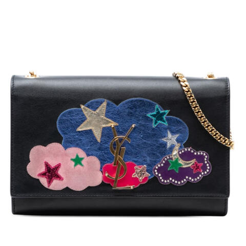 The pre-owned Saint Laurent Medium Lambskin Cloud Star Patchwork Monogram Kate Crossbody is a chic designer handbag that blends iconic appeal with modern elegance. Crafted with a leather body, this stylish Kate crossbody features a chain-link shoulder strap, a front flap with a metal YSL logo and magnetic closure, and an interior slip pocket for easy organization. Measuring 6.10 x 9.25 x 1.97 inches, it is a standout accessory that offers luxury and contemporary style.<br /><br /> Designed for both fashion and functionality, this Saint Laurent crossbody bag is ideal for carrying your essentials while elevating any outfit. The compact yet practical silhouette, signature monogram hardware, and distinctive Cloud Star Patchwork design make it a versatile choice for day-to-night wear. Whether paired with casual looks or more polished ensembles, this designer handbag is perfect for everyday use.<br /><br /> Condition Rating: AB. Comments: Exterior Back Scratched, Creased. Exterior Bottom Scratched. Exterior Corners Worn. Exterior Front Scratched, Creased. Exterior Side Worn, Cracked. Exterior Top Stained With Others. Hardware Closure Scratched. Hardware Practical Attachment Scratched. Interior Lining Scratched, Stained With Others. Inclusions: None. Model: Medium Lambskin Cloud Star Patchwork Monogram Kate Crossbody. Item# CW0R3EGRWBKIPERS. This pre-owned Saint Laurent handbag offers an excellent chance to enjoy a sought-after luxury piece with authentic designer character. This is a great opportunity to own an authentic handbag at a more accessible price.
