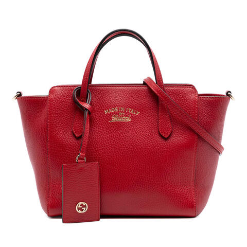 The pre-owned Gucci Mini Leather Swing Satchel is a chic and versatile handbag crafted from supple leather with a structured silhouette that complements both casual and polished looks. Featuring flat leather handles, a detachable flat leather strap, and a secure top zip closure, this designer satchel offers refined practicality in a compact size. Interior zip and slip pockets help keep your essentials organized, making it a stylish choice for daily wear with luxury and contemporary style.<br /><br /> Designed for both fashion and functionality, this Gucci Mini Swing Satchel is sized at 7.87 x 8.46 x 4.53 inches, offering enough space for your everyday necessities while maintaining an elegant mini profile. The included name tag and shoulder strap add convenience and versatility, allowing you to carry it by hand or wear it crossbody depending on your needs. Its timeless design and signature Gucci appeal make it a smart addition to any handbag collection, perfect for everyday use.<br /><br /> This authentic pre-owned Gucci Mini Leather Swing Satchel, model Mini Leather Swing Satchel, Item# L1VZF6BQ5Y6Z8CMZ, is a wonderful option for shoppers seeking designer style at a better value. Condition Rating: B+. Comments: Exterior Bottom Creased. Exterior Corners Worn. Exterior Front Worn, Creased. Exterior Handle/Strap Stained With Others, Worn, Creased. Exterior Side Creased. Exterior Top Worn. Hardware Embellishment Scratched. Hardware Practical Attachment Scratched. Zipper Scratched. Interior Lining Stained With Others. Interior Pocket Stained With Others. Inclusions: Name tag, Shoulder Strap. This is a great opportunity to own an authentic handbag at a more accessible price.