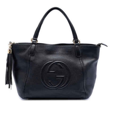 The Gucci Small Calfskin Soho Cellarius Satchel is a sophisticated designer handbag that blends timeless elegance with everyday versatility. Crafted from supple calfskin leather, this satchel features flat leather handles, a secure top zip closure with charming tassel details, and a thoughtfully organized interior with zip and slip pockets. Its compact yet practical size makes it an ideal choice for carrying your essentials while elevating any outfit with luxury and contemporary style.<br /><br /> Designed for both fashion and functionality, this pre-owned Gucci Soho Cellarius Satchel offers the signature craftsmanship and polished look that make Gucci handbags so desirable. The structured silhouette and refined leather finish create a chic accessory that transitions effortlessly from day to evening, making it a stylish addition to any wardrobe and perfect for everyday use.<br /><br /> This authentic pre-owned Gucci handbag is a smart option for shoppers seeking premium designer style at a more attainable value. Rating: B+. Condition for pre-owned: Exterior Back Creased, Worn. Exterior Corners Worn. Exterior Front Creased, Worn. Exterior Handle/Strap Worn, Cut Stitching. Exterior Side Creased, Worn. Exterior Top Worn. Hardware Practical Attachment Scratched. Zipper Scratched. Interior Lining Worn, Stained With Others. Inclusions: None. Model: Small Calfskin Soho Cellarius Satchel. Item# XL1H6Q6NSW78UC8F. Pre-owned Gucci Small Calfskin Soho Cellarius Satchel Ladies XL1H6Q6NSW78UC8F. This is a great opportunity to own an authentic handbag at a more accessible price.