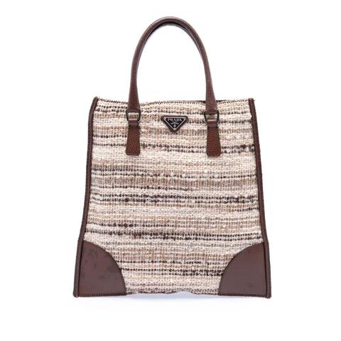 Pre-owned Prada Vitello Trimmed Tweed Flat Tote Ladies OCASLOG8NN6EPS3K (LPN402789)
