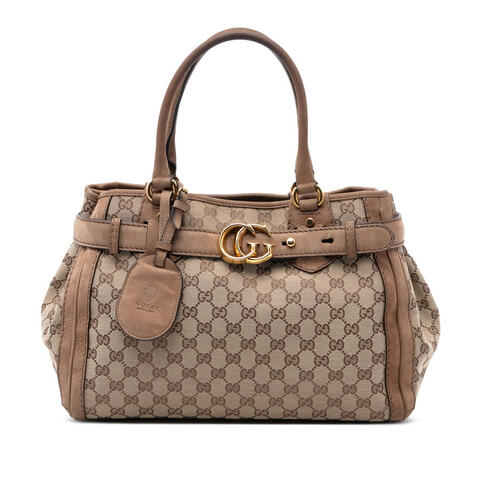 Pre-owned Gucci GG Canvas Running Tote Ladies I4Z32K506U0B61BY is a chic and versatile designer handbag crafted with Guccis signature GG canvas and finished with refined nubuck leather trim. This stylish tote features rolled nubuck leather handles, an open top with a magnetic snap closure, and a thoughtfully designed interior with zip and slip pockets for easy organization. Measuring 10.24 x 13.98 x 6.10 inches, it offers a practical size for daily essentials while showcasing luxury and contemporary style. <br /><br /> Designed for both fashion and functionality, this Gucci Running tote bag is an ideal choice for anyone seeking a sophisticated pre-owned luxury handbag with timeless appeal. The combination of durable canvas construction and elegant leather accents makes it a standout accessory for work, shopping, or casual outings, while the spacious interior helps keep your belongings neatly arranged. Its classic Gucci design and everyday versatility make it perfect for everyday use. <br /><br /> This authentic pre-owned Gucci tote is a smart option for buyers who appreciate designer craftsmanship at a better value. Condition Rating: B+. Comments: Exterior Back Worn, Scratched, Stained With Others. Exterior Bottom Stained With Others, Worn. Exterior Corners Worn, Stained With Others. Exterior Front Scratched, Creased, Stained With Others. Exterior Handle/Strap Worn, Cracked, Stained With Others. Exterior Side Worn, Loose Stiching. Hardware Closure Scratched. Hardware Embellishment Scratched. Hardware Practical Attachment Scratched. Zipper Scratched. Interior Lining Worn, Stained With Others. Interior Pocket Stained With Others. Inclusions: Name tag Model: GG Canvas Running Tote Item# I4Z32K506U0B61BY. This is a great opportunity to own an authentic handbag at a more accessible price.