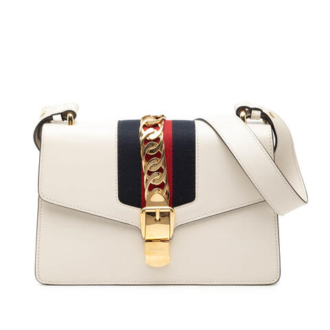 The Gucci Small Leather Sylvie Web Satchel is a timeless designer handbag that blends iconic craftsmanship with elegant appeal. Crafted from premium leather, this pre-owned Gucci Sylvie features a structured silhouette, a flat leather handle, a detachable flat web strap, and a front flap with a push lock closure for a refined finish. Inside, it offers convenient zip and slip pockets to help keep your essentials organized, making it a standout accessory with luxury and contemporary style.<br /><br /> Designed for both fashion and functionality, this Gucci Small Leather Sylvie Web Satchel is ideal for day-to-night wear. Its compact yet practical size measures approximately 6.69 inches high, 10.04 inches wide, and 1.97 inches deep, offering enough room for your daily necessities without feeling bulky. The combination of classic leather and the signature web strap gives this authentic Gucci handbag versatile styling options that are perfect for everyday use.<br /><br /> This pre-owned Gucci handbag includes the shoulder strap and is identified as Model: Small Leather Sylvie Web Satchel, Item# D1UJARX3C72IWMAE. Condition Rating: AB. Comments: Exterior Back Scratched. Exterior Bottom Stained With Others. Exterior Front Scratched. Exterior Handle/Strap Scratched, Creased. Exterior Top Scratched. Hardware Closure Scratched. Hardware Embellishment Scratched. Hardware Practical Attachment Scratched. Zipper Scratched. Interior Lining Scratched. This is a great opportunity to own an authentic handbag at a more accessible price.