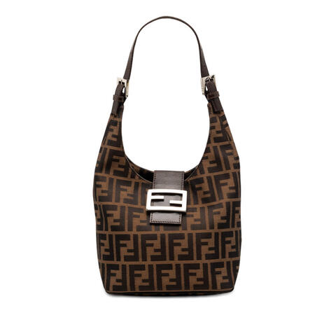 The Fendi Zucca Canvas Shoulder Bag is a timeless designer accessory that blends iconic appeal with everyday elegance. Crafted with the signature Zucca canvas body and accented by a flat leather shoulder strap, this handbag offers a refined silhouette that complements a wide range of looks. The open top with a front strap and magnetic snap closure adds both style and convenience, making it a standout choice for anyone who appreciates luxury and contemporary style.<br /><br /> Designed for both fashion and functionality, this pre-owned Fendi shoulder bag features a well-organized interior with a zip pocket to help keep your essentials secure. Its compact yet practical dimensions of 6.69 x 7.48 x 5.12 inches make it easy to carry while still offering enough space for your daily necessities. Whether paired with casual outfits or elevated ensembles, this authentic Fendi bag is perfect for everyday use.<br /><br /> This pre-owned Fendi Zucca Canvas Shoulder Bag, model Zucca Canvas Shoulder Bag, Item# QKRGW3B12BECFYTB, is a stylish choice for ladies seeking authentic luxury at a more attainable value. Condition Rating: B+. Comments: Zipper Scratched. Hardware Practical Attachment Scratched. Exterior Bottom Worn. Exterior Top Worn. Exterior Front Worn. Exterior Handle/Strap Worn, Creased, Cracked. Exterior Corners Worn. Hardware Closure Scratched. Interior Pocket Worn. Inclusions: None. This is a great opportunity to own an authentic handbag at a more accessible price.