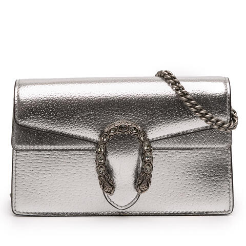 The pre-owned Gucci Mini Leather Dionysus Crossbody is a chic designer handbag that combines timeless appeal with a compact, elegant silhouette. Crafted from leather, this Mini Dionysus Crossbody bag features a refined front flap with snap closure and a silver-toned chain strap that adds a polished finish to any look. With dimensions of 3.94 x 6.50 x 1.57 inches, it is a stylish choice for those who appreciate luxury and contemporary style.<br /><br /> Designed for both fashion and functionality, this authentic Gucci crossbody bag is ideal for carrying your small daily essentials while elevating both casual and dressy outfits. Its iconic design, premium leather construction, and versatile chain strap make it a standout accessory for day-to-night wear, while the included dust bag adds extra value for storage and care. This compact designer handbag is perfect for everyday use.<br /><br /> Condition Rating: C. Comments: Exterior Bottom Stained With Others, Creased. Exterior Side Stained With Others. Hardware Embellishment Missing. Hardware Practical Attachment Scratched. Interior Lining Stained With Others. Inclusions: Dust bag. Model: Mini Leather Dionysus Crossbody. Item# 9E956O29F5EM0P32. Pre-owned Gucci Mini Leather Dionysus Crossbody Ladies 9E956O29F5EM0P32. This is a great opportunity to own an authentic handbag at a more accessible price.