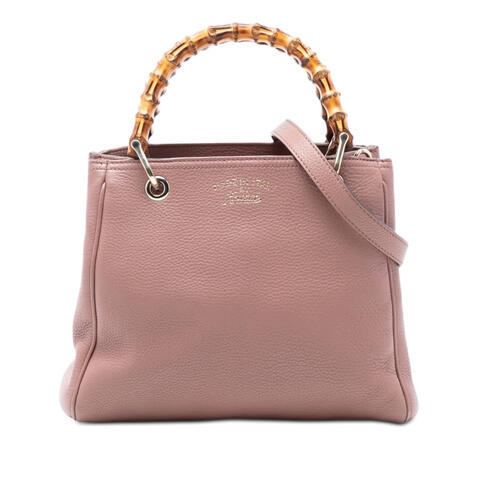 The pre-owned Gucci Small Calfskin Bamboo Shopper Satchel is a timeless designer handbag that blends iconic craftsmanship with everyday elegance. Crafted from luxurious calfskin leather and finished with signature bamboo handles, this Gucci satchel offers a refined silhouette that easily complements both casual and polished looks. With its detachable flat leather strap and spacious interior, it delivers the ideal balance of luxury and contemporary style.<br /><br /> Designed for both fashion and functionality, this Gucci Bamboo Shopper satchel features an open top with magnetic snap closure, along with convenient interior zip and slip pockets to keep your essentials organized. Measuring 9.45 x 11.02 x 2.56 inches, it is a versatile size for carrying daily necessities while maintaining a sleek, sophisticated profile. Whether worn by the handles or over the shoulder with the included strap, this designer handbag is perfect for everyday use.<br /><br /> This authentic pre-owned Gucci handbag includes the shoulder strap and is a stylish choice for collectors and fashion lovers seeking a sought-after luxury accessory at a better value. Condition Rating: B+. Comments: Exterior Back Creased. Exterior Corners Worn. Exterior Front Creased, Worn. Exterior Handle/Strap Stained With Transfer of Color, Creased, Cracked. Exterior Side Creased. Exterior Top Stained With Transfer of Color, Worn. Hardware Closure Scratched. Hardware Practical Attachment Scratched. Zipper Scratched. Interior Pocket Stained With Others. This is a great opportunity to own an authentic handbag at a more accessible price.