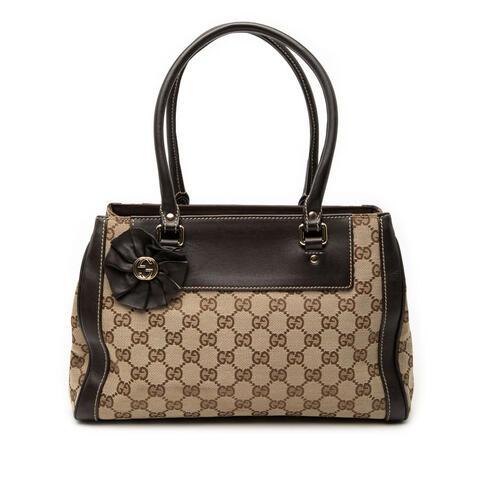 The pre-owned Gucci GG Canvas Trophy Tote is a stylish designer handbag that blends iconic appeal with practical elegance. Crafted with a durable canvas body, refined leather trim, rolled leather straps, an open top, and convenient interior slip pockets, this tote offers a versatile silhouette for daily wear. With dimensions of 7.09 x 11.42 x 4.72 inches, it is a chic and functional choice for anyone who appreciates luxury and contemporary style.<br /><br /> Designed for both fashion and functionality, this Gucci tote delivers the signature look of a timeless luxury handbag while providing ample space for your essentials. The classic GG canvas design and structured shape make it easy to pair with casual or elevated outfits, making it a smart addition to any designer handbag collection and perfect for everyday use.<br /><br /> This authentic pre-owned Gucci GG Canvas Trophy Tote is a great option for shoppers seeking a luxury handbag at a more attainable value. Condition Rating: B. Comments: Exterior Back Worn. Exterior Corners Worn. Exterior Front Out of Shape, Worn. Exterior Handle/Strap Stained With Others, Worn, Cracked. Exterior Side Ripped, Worn, Cracked. Exterior Top Worn. Hardware Closure Scratched. Hardware Embellishment Scratched. Hardware Practical Attachment Scratched. Interior Lining Stained With Others. Interior Pocket Loose Stiching, Stained With Others. Inclusions: None. Model: GG Canvas Trophy Tote. Item# M0V9ZOMU6QNDLRVO. Pre-owned Gucci GG Canvas Trophy Tote Ladies M0V9ZOMU6QNDLRVO. This is a great opportunity to own an authentic handbag at a more accessible price.