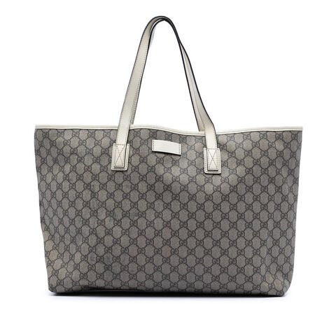 The pre-owned Gucci GG Supreme Tote showcases the brands iconic coated canvas with refined leather trim, offering a timeless look that blends durability with elegance. Finished with flat leather straps, a secure top zip closure, and an interior slip pocket, this designer tote is both stylish and practical for daily wear. With dimensions of 13.39 x 16.54 x 4.72 inches, it provides generous space for your essentials while reflecting luxury and contemporary style.<br /><br /> Designed for both fashion and functionality, this Gucci GG Supreme Tote is an excellent choice for anyone seeking a versatile designer handbag with enduring appeal. The classic silhouette and signature GG Supreme canvas make it easy to pair with both casual and polished looks, while the spacious interior helps keep your belongings organized throughout the day. Its combination of form and function makes it a smart wardrobe addition that is perfect for everyday use.<br /><br /> This authentic pre-owned Gucci handbag is a compelling option for buyers who want to enjoy luxury designer fashion at a more attainable value. Condition Rating: B+. Pre-owned condition details: Exterior Back Worn. Exterior Front Stained With Transfer of Color, Stained With Others. Exterior Handle/Strap Stained With Others. Exterior Side Stained With Others, Worn. Exterior Top Worn. Zipper Scratched. Interior Lining Stained With Others. Interior Pocket Stained With Others. Inclusions: None. Model: GG Supreme Tote. Item# HZQ3P4WYOULB3WJJ. This is a great opportunity to own an authentic handbag at a more accessible price.