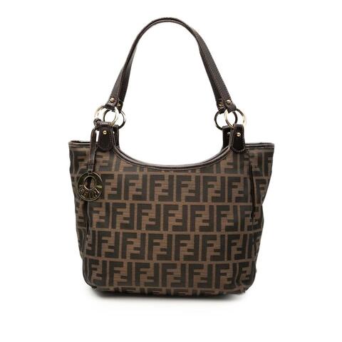 The pre-owned Fendi Zucca Canvas Chef Tote is a stylish designer handbag that blends iconic branding with everyday versatility. Crafted with a durable canvas body and refined leather trim, this tote features flat leather straps, a secure top zip closure, convenient exterior compartments, and an interior slip pocket for easy organization. With dimensions of 8.66 x 10.63 x 3.74 inches, it offers a compact yet practical silhouette that reflects luxury and contemporary style.<br /><br /> Designed for both fashion and functionality, this authentic Fendi tote is an excellent choice for carrying your daily essentials while elevating any outfit. The signature Zucca canvas design adds timeless appeal, while the structured shape and multiple storage areas make it especially convenient for life on the go. Whether paired with casual daytime looks or polished city ensembles, this handbag is perfect for everyday use.<br /><br /> This pre-owned Fendi Zucca Canvas Chef Tote includes the original charm and is identified by Model: Zucca Canvas Chef Tote, Item# 6U58TG313JTPC03I. Condition Rating: B. Comments: Exterior Back Worn. Exterior Corners Worn. Exterior Front Worn. Exterior Handle/Strap Cracked, Worn, Scratched. Exterior Pocket Stained With Others. Exterior Top Worn, Scratched, Loose Stiching, Cracked. Hardware Practical Attachment Scratched. Zipper Scratched. Interior Lining Stained With Others. Interior Pocket Stained With Others. This is a great opportunity to own an authentic handbag at a more accessible price.