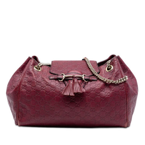 The Gucci Large Guccissima Emily Chain Shoulder Bag is a sophisticated pre-owned designer handbag that combines timeless elegance with everyday versatility. Crafted from embossed leather, this iconic Gucci shoulder bag features curb chain straps, a chic front flap with a slip-through closure, and a spacious interior with zip and slip pockets for organized storage. With dimensions of 12.20 x 14.37 x 6.30 inches, it offers a roomy yet refined silhouette that makes a statement with luxury and contemporary style.<br /><br /> Designed for both fashion and functionality, this Gucci Emily bag is an excellent choice for anyone seeking a stylish luxury handbag that transitions effortlessly from day to night. The embossed Guccissima leather adds signature designer appeal, while the practical interior compartments help keep essentials secure and accessible. Whether paired with casual or polished looks, this authentic Gucci chain shoulder bag is perfect for everyday use.<br /><br /> This pre-owned Gucci Large Guccissima Emily Chain Shoulder Bag, Model: Large Guccissima Emily Chain Shoulder Bag, Item# UGSSSCC7U6IF880A, is a smart option for buyers looking to own authentic Gucci at a more attainable value. Condition Rating: B+. Comments: Exterior Bottom Worn. Exterior Corners Worn. Interior Lining Stained With Others. Exterior Handle/Strap Scratched, Worn. Exterior Back Worn. Exterior Front Stained With Transfer of Color, Worn. Exterior Side Scratched, Worn. Exterior Top Worn. Zipper Scratched. Hardware Practical Attachment Scratched. Inclusions: None. This is a great opportunity to own an authentic handbag at a more accessible price.