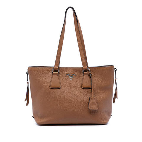 The pre-owned Prada Vitello Phenix Side Zip Shopper Tote is a stylish and versatile designer handbag that blends timeless elegance with practical appeal. Crafted with a durable leather body, this tote features flat leather straps, signature exterior side zip details, an open top with a magnetic snap button closure, and interior zip and slip pockets for organized storage. With dimensions of 9.84 x 11.81 x 5.51 inches, it offers a chic silhouette that is ideal for daily wear while reflecting Pradas luxury and contemporary style.<br /><br /> Designed for both fashion and functionality, this authentic Prada tote is an excellent choice for carrying your essentials with ease and sophistication. The spacious interior and convenient pocket layout make it well-suited for work, shopping, or casual outings, while the included charm adds a refined finishing touch. Its iconic design and practical features make this designer handbag a smart addition to any collection, perfect for everyday use.<br /><br /> This pre-owned Prada Vitello Phenix Side Zip Shopper Tote, model Side Zip Shopper Tote, item #OVAF2KXFQRPFXPOU, is offered in Condition Rating: B+. Comments: Interior Pocket Stained With Others. Interior Lining Stained With Others, Sticky. Exterior Bottom Stained With Others. Exterior Handle/Strap Worn, Cracked. Exterior Side Worn. Hardware Practical Attachment Scratched. Exterior Corners Worn. Zipper Scratched. Inclusions: Charm. This is a great opportunity to own an authentic handbag at a more accessible price.