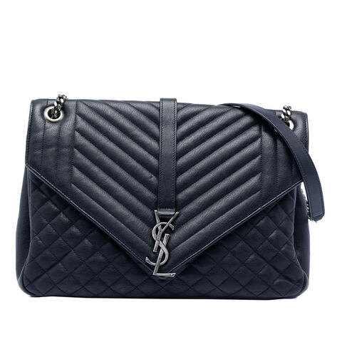 The Saint Laurent Large Triquilt Sheepskin Monogram College Bag is a timeless designer handbag that blends elegant craftsmanship with standout appeal. Crafted from soft quilted sheepskin leather, this sophisticated bag features the iconic YSL monogram, a front flap with magnetic snap button closure, chain straps with a leather shoulder guard, and a sleek structured silhouette that elevates any wardrobe with luxury and contemporary style.<br /><br /> Designed for both fashion and functionality, this Saint Laurent College bag offers thoughtful storage with an exterior back slip pocket and an interior zip pocket to help keep essentials organized. Its versatile size makes it ideal for day-to-night wear, while the refined chain strap design adds a polished finish that is perfect for everyday use.<br /><br /> This pre-owned Saint Laurent Large Triquilt Sheepskin Monogram College Bag is a stylish way to own a sought-after luxury accessory for less. Dimensions (in): 9.06 x 12.60 x 3.15. Condition Rating: B+. Comments: Exterior Back Worn, Cut Stitching. Exterior Corners Worn. Exterior Front Worn. Exterior Handle/Strap Cut Stitching. Exterior Pocket Worn. Exterior Side Worn. Exterior Top Worn. Hardware Closure Scratched. Hardware Practical Attachment Scratched. Zipper Scratched. Interior Lining Scratched, Stained With Others. Inclusions: None. Model: Large Triquilt Sheepskin Monogram College Bag. Item# 9GO4KABO9V3JE4LI. Pre-owned Saint Laurent Large Triquilt Sheepskin Monogram College Bag Ladies 9GO4KABO9V3JE4LI. This is a great opportunity to own an authentic handbag at a more accessible price.