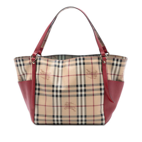 Pre-owned Burberry Small Leather Trimmed Haymarket Check Coated Canvas Canterbury Tote Ladies U03G61QY8S0LK10A (LPN403109)