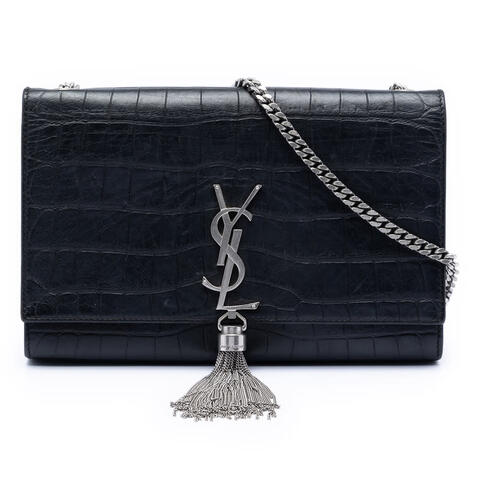 The Saint Laurent Medium Croc Embossed Leather Kate Tassel Crossbody is a chic designer handbag that blends timeless elegance with a modern edge. Crafted with an embossed leather body, this stylish crossbody features the iconic Kate silhouette, a front flap with magnetic snap closure, a refined chain link shoulder strap, and an interior slip pocket for essentials. Its compact yet sophisticated design makes it an ideal choice for day-to-night wear, offering luxury and contemporary style.<br /><br /> Designed for both fashion and functionality, this pre-owned Saint Laurent crossbody bag offers a sleek and practical option for carrying your daily necessities in style. Measuring approximately 6.10 inches high, 9.45 inches wide, and 1.97 inches deep, it provides a convenient size for essentials while maintaining a polished, elevated look. Whether paired with casual outfits or dressier ensembles, this authentic Saint Laurent handbag is perfect for everyday use.<br /><br /> This pre-owned Saint Laurent Medium Croc Embossed Leather Kate Tassel Crossbody is a smart choice for shoppers seeking authentic luxury at a more attainable value. Condition Rating: B+. Comments: Exterior Back Creased, Scratched. Exterior Bottom Stained With Others, Worn. Exterior Corners Worn. Exterior Front Stained With Others, Scratched, Worn. Exterior Side Stained With Others. Hardware Closure Scratched. Hardware Practical Attachment Scratched. Interior Lining Stained With Others. Inclusions: None. Model: Medium Croc Embossed Leather Kate Tassel Crossbody. Item# HM4YGIXVX9TUK4HL. Pre-owned Saint Laurent Medium Croc Embossed Leather Kate Tassel Crossbody Ladies HM4YGIXVX9TUK4HL. This is a great opportunity to own an authentic handbag at a more accessible price.
