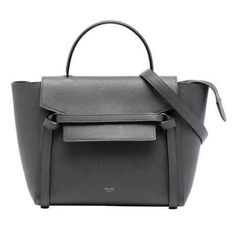 The pre-owned Celine Micro Grained Calfskin Belt Bag is a chic and versatile designer handbag crafted from luxurious leather, offering a refined silhouette that elevates any wardrobe. Featuring a flat leather top handle, a detachable flat leather strap, a front flap with a slip-through closure, and a top zip closure, this stylish Celine bag blends elegance with practicality. Its compact yet functional design, measuring 9.25 x 9.84 x 5.31 inches, makes it an ideal choice for those who appreciate luxury and contemporary style.<br /><br /> Designed for both fashion and functionality, this authentic Celine Belt Bag includes an exterior back zip pocket and an interior slip pocket to help keep your essentials organized throughout the day. The included shoulder strap adds carrying versatility, making it easy to wear by hand or over the shoulder depending on your needs. With its timeless design and premium micro grained calfskin construction, this designer handbag is perfect for everyday use.<br /><br /> This pre-owned Celine Micro Grained Calfskin Belt Bag is rated B+ and remains a desirable luxury find for any handbag collector or fashion lover. Comments: Exterior Back Stained With Others. Exterior Bottom Scratched, Worn. Exterior Corners Worn. Exterior Front Scratched, Worn. Exterior Handle/Strap Worn, Stained With Others, Cracked, Creased. Exterior Side Worn. Exterior Top Worn. Hardware Closure Scratched. Hardware Practical Attachment Scratched. Zipper Scratched. Interior Lining Stained With Others, Worn. Inclusions: Shoulder Strap Model: Micro Grained Calfskin Belt Bag Item# PI9LR7LH9UPMBIB7. This is a great opportunity to own an authentic handbag at a more accessible price.