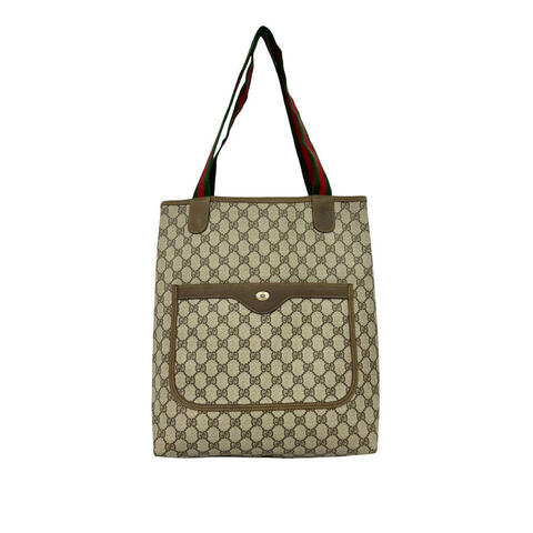 The pre-owned Gucci GG Supreme Web Tote is a stylish and versatile handbag that showcases the brands iconic design with a coated canvas body, leather trim, and signature flat canvas web straps. Its spacious silhouette, measuring 14.57 x 12.40 x 3.74 inches, offers a refined yet practical option for carrying your daily essentials with ease. This designer tote is an excellent choice for anyone seeking a blend of timeless appeal, luxury and contemporary style.<br /><br /> Designed for both fashion and functionality, this Gucci tote features an open top for easy access and an exterior slip pocket for added convenience and organization. The classic GG Supreme pattern paired with durable materials makes it a fashionable companion for work, shopping, travel, or casual outings, making it perfect for everyday use.<br /><br /> This authentic pre-owned Gucci GG Supreme Web Tote is rated B+ and remains a desirable luxury piece for any handbag collection. Condition details: Interior lining stained with others and scratched; exterior handle/strap stained with others and worn; exterior front worn; exterior pocket scratched; exterior back worn; exterior top worn. Inclusions: None. Model: GG Supreme Web Tote. Item# UZ76HE7CLF3QV8B2. This is a great opportunity to own an authentic handbag at a more accessible price.