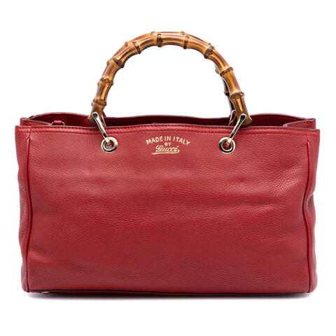 Pre-owned Gucci Medium Calfskin Bamboo Shopper Satchel in supple calfskin leather, featuring the brands iconic bamboo top handles and a refined open-top silhouette with magnetic closure. This elegant designer satchel offers a spacious interior with a zip compartment, plus zip and slip pockets to keep essentials organized. Measuring 8.27 x 13.19 x 5.51 inches, it is a standout luxury handbag that blends timeless craftsmanship with luxury and contemporary style.<br /><br /> Designed for both fashion and functionality, this Gucci Bamboo Shopper Satchel is a versatile choice for work, shopping, or weekend outings. The classic structure, premium leather body, and signature bamboo detailing make it an eye-catching accessory that pairs effortlessly with both casual and polished looks. With practical interior storage and a comfortable carry, this authentic Gucci handbag is perfect for everyday use.<br /><br /> Condition Rating: B+. Comments: Exterior Back Creased. Exterior Corners Worn. Exterior Front Creased. Exterior Handle/Strap Cracked, Worn, Stained With Others. Exterior Side Worn. Exterior Top Worn, Stained With Others. Hardware Closure Scratched. Hardware Practical Attachment Scratched. Zipper Scratched. Interior Lining Stained With Others. Interior Pocket Stained With Others. Inclusions: None. Model: Medium Calfskin Bamboo Shopper Satchel. Item# FIEPS7JFRHPTBJH9. This authentic pre-owned Gucci handbag is an excellent choice for collectors and style lovers alike. This is a great opportunity to own an authentic handbag at a more accessible price.